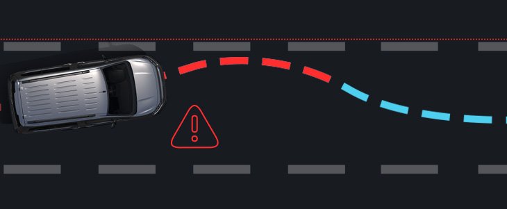 See aktiivne turvasüsteem tagab, et püsite sõidurajal. Kui süsteem tuvastab ohu sõita sõidurajalt juhuslikult välja, korrigeeritakse järk-järgult roolimehhanismi, et auto püsiks sõidurajal.