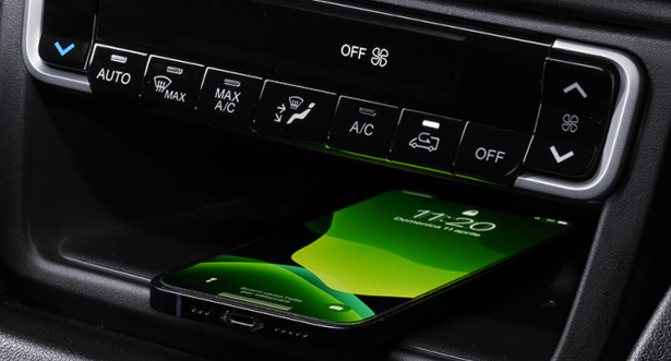 Turvaline ja kindel koht esipaneelil nutitelefoni hoidmiseks ja laadimiseks. Automaatse kliimaseadmega sõidukil asub see kliimaseadme juhtpaneeli all ja manuaalse kliimaseadmega sõidukil uue paigutusega topsihoidja keskmises osas.
