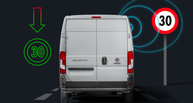 Uus Ducato tuvastab sõiduraja ja teeserva märgistust ja korrigeerib sõidujoont vajaduse korral autonoomselt, et hoida ennast valitud sõiduraja keskel.