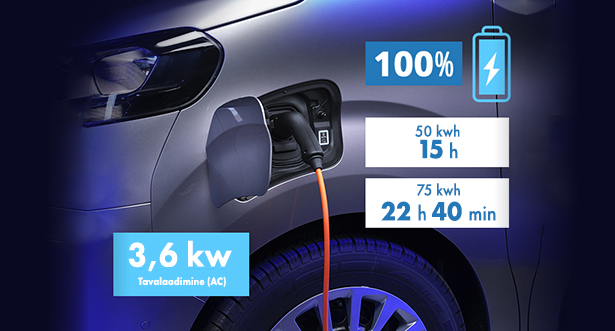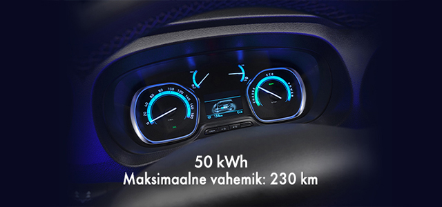 Tavaaku, mis võimaldab teile maksimaalse sõidukiiruse 130 km/h ja väände 260 Nm. 50-kWh aku võimaldab sõiduulatuse ühe laadimiskorraga kuni 230 km*.