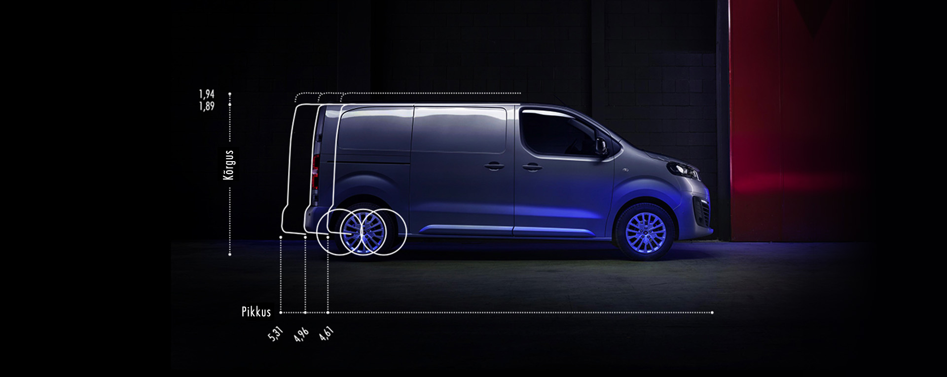 E-Scudo on elektriline ja pakub suurepärast minekut. Elektrimudeli kaubaruumi maht ja kandevõime jäävad samaks nagu diiselmootoriga mudelil. Proovige seda ise.